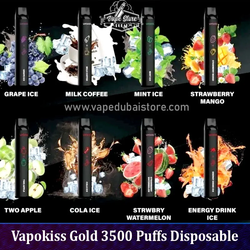 Vapokiss Gold 3500 Puffs is a brand of disposable vape pens that claim to offer up to 3500 puffs per device. The device comes pre-filled with e-liquid and is designed to be used until the battery and e-liquid are depleted, at which point the device can be disposed of.